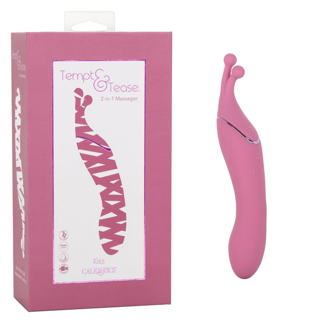 Discover the ultimate sensation with the Tempt & Tease Kiss - a revolutionary dual sided massager designed to cater to your every desire. Featuring two distinct ends, two powerful motors, and 7 vibration functions that can be controlled independently, this versatile massager will take you on a journey to new heights of pleasure.