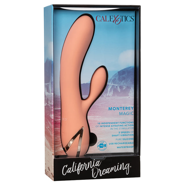 Experience the California Dreaming Monterey Magic, featuring a potent stimulator that delivers intense vibrations and 10 exciting gyration modes to keep you fully satisfied. Enjoy 3 speeds of shaft vibration, all easily controlled with just two buttons—one for the stimulator and one for the shaft. A separate power button features a handy three-second lock, ensuring your secret pleasure stays just that—secret. Get ready for endless fun with effortless control!