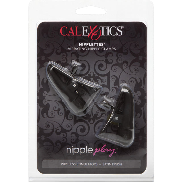 Squeeze and tantalize your intimate sweet spots with the Nipplettes. The exotic vibrating nipple clamps are designed with your ultimate orgasmic pleasure in mind and are fully adjustable for the perfect comfort fit. The easy to use, power-packed clamps deliver intensely pleasurable sensations for a mind-blowing experience. The self-contained clamps are made from soft and ultra-smooth ABS with Rubber-Cote and feature a seamless design for maximized comfort. The clamps are supplied as a pair and boast easy push button activation for instant orgasmic delight. To use, squeeze the clamps open and attach directly to the nipple. Once activated, the super sensitive nipples are aroused and stimulated with tantalizing good vibrations. Extend your pleasure further by applying arousal gel to the nipple area before attaching the exotic vibrating clamps. The discreet clamps measure a compact 2.75" / 7 cm and are the perfect introduction toy for mild BDSM and secret fantasy play. The adjustable clamps can be tightened for increased sensitivity and heightened climax satisfaction. Use the waterproof clamps for intimate exploration fun in the shower, bath or hot tub. The mini clamps can also be attached to other erogenous zones all over the body. Before and after use, clean the nipple arousers with a toy cleaner spray or mild soapy water.