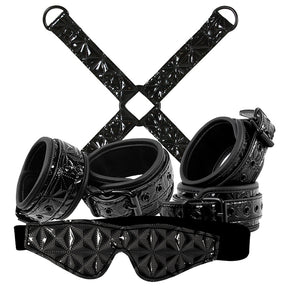 The Sinful Bondage Kit contains everything one needs for a thrilling evening of BDSM play. This top-of-the-line collection features a variety of restraints suitable for both beginners and experienced enthusiasts. Available in Midnight Black and Fuchsia, the kit consists of wrist and ankle cuffs, a hogtie, and a blindfold, all crafted with precision stitching and lined with comfortable neoprene for extended play sessions. Each Sinful item is durably designed with black anodized material and includes nickel-free hardware. Tap into your inner desires with The Sinful Bondage Kit from NS Novelties.