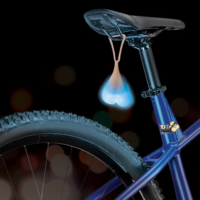 Simply attach the nuts by pulling the stretchy loop over a ring, bar, or handle. Press the button to turn it on and enjoy the nutty glow!