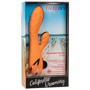 Dive into waves of pleasure with the California Dreaming Newport Beach Babe. This deluxe massager features 10 thrilling thumping modes and 3 vibration speeds, along with a textured shaft designed to provide an exciting experience. It's a uniquely shaped teaser that offers 10 independently controlled pulsations for a wild ride, while the curved shaft targets your G-spot with powerful vibrations. Customize your experience and let the intense rhythms take you on a sensational journey you won’t forget.