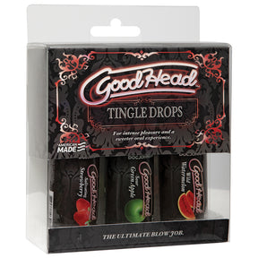 This collection of oral stimulation aids enhances the sensation of oral sex through tingling, teasing, and sweetening. Our GoodHead Tingle Drops are conveniently packaged in 1 oz. drip bottles and come in three mouthwatering flavors: Strawberry, Green Apple, and Watermelon. Experience the perfect balance of delicious flavor and delightful sensations with just a few drops!