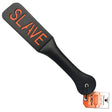 This expertly crafted leather paddle features a unique design that splits at the top, delivering a gentle slap accompanied by an enticing smacking sound. With each light strike, the bold "Slave" imprint emerges on the skin, adding a provocative and commanding element to your play.