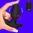 Rotating & Vibrating Silicone Butt Plug w/ Remote - Black