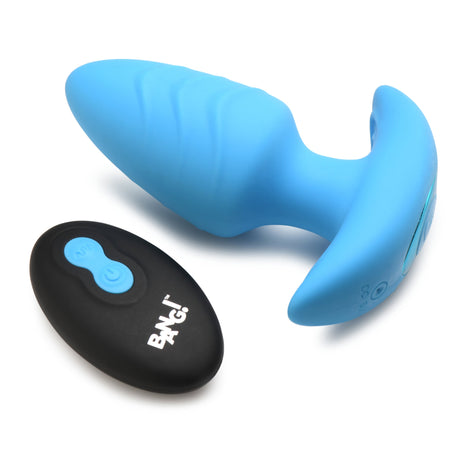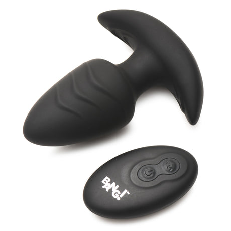 Rotating & Vibrating Silicone Butt Plug w/ Remote - Black