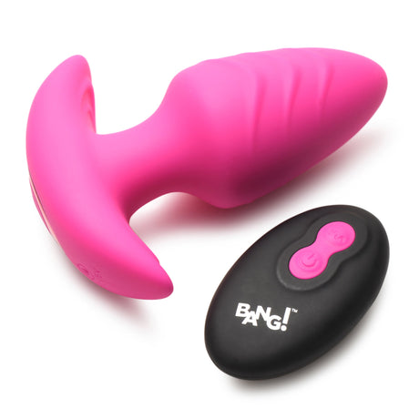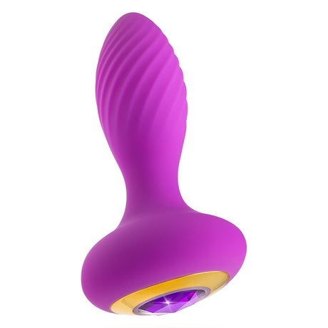Rotating & Vibrating Silicone Butt Plug w/ Remote - Purple