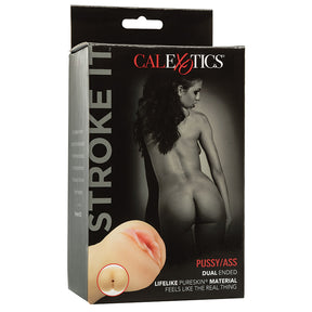 The Stroke It™ collection offers a stimulating experience, complete with a Pussy and Ass stroker sleeve. With over 1 pound of heavy-duty stroking pleasure, you can choose from two entry options and an ultra-tight textured chamber to dive deep into. This double-ended stroker features two realistic entry options and a plush, ultra-tight textured section to transport you to a wonderland of pleasure. Made with over 1 pound of weighty PureSkin® material, this durable sleeve provides the perfect amount of oomph for solo play. Its super-soft, ultra-stretchy properties emulate a lifelike feel, delivering pure satisfaction with every stroke. Plus, cleaning is a breeze - wash with warm water and soap before and after each use, and use the Universal Toy Cleaner for added disinfection.