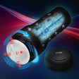 - Rechargeable and Splashproof: Recharge via the USB cable provided. Rated IPX5 waterproof.