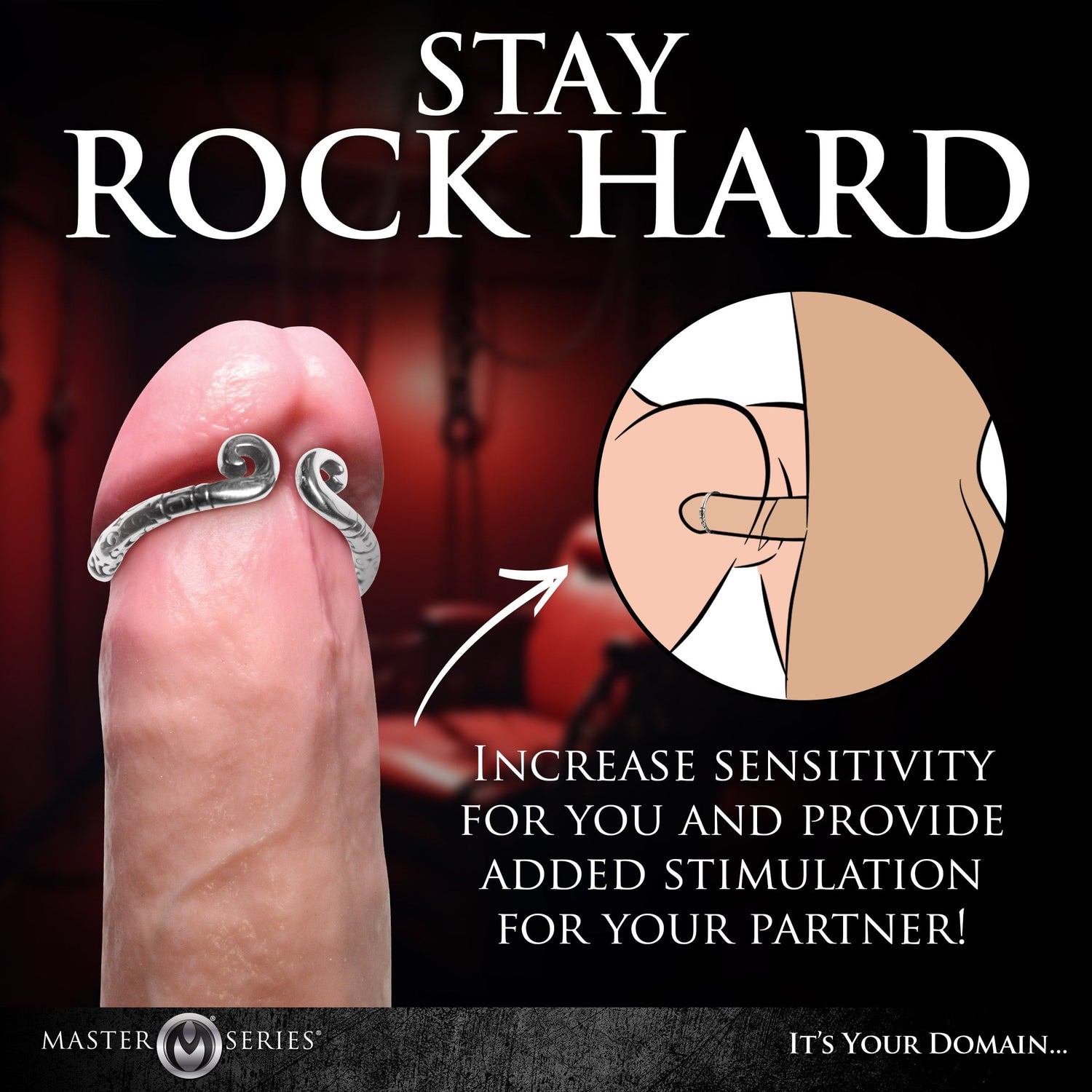 Rub lube on your shaft and then slide the ring right over your head. Place it right at the corona, at the ridge of your head where it's most sensitive. Squeeze or stretch open the ring for a perfect fit. As you stroke yourself, you'll notice an increase in pressure and the head of your shaft getting hard and shiny. Enjoy the sensation, and share your gorgeous rod with a lover!